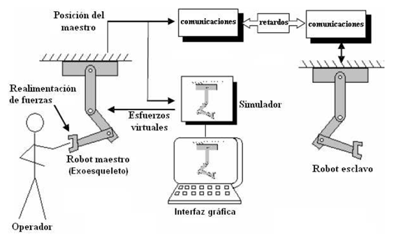 Un primer enfoque es considerar el exoesqueleto como un Tele-manipulador (control conocido como Maestro-Esclavo) generalmente utilizado